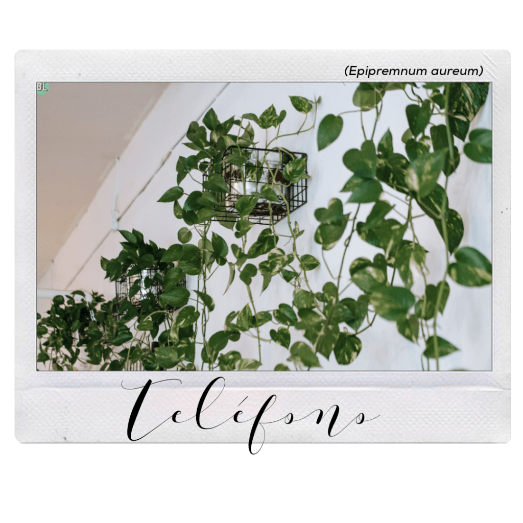 Sin duda es la planta por excelencia para interiores, sus hojas son perennes (es decir que no se caen al otoño), su nombre común se debe a que crece en línea tipo enredadera asemejando un cable de teléfono (de los vintage claro), un Potus sano puede crecer mas de 2 metros de longitud y sus hojas hasta el tamaño de la palma de la mano, dependiendo de la especie pueden variar sus colores y tamaño de hojas.
